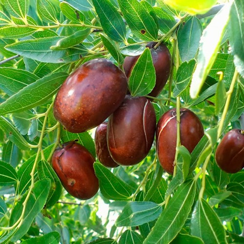 Зизифус финиковый (Ziziphus jujuba) – это новый сорт, который также известен под названием ююба или китайский финик. Он относится к семейству Rhamnaceae.Растение зизифуса достигает высоты до 2,5 метров и имеет раскидистую крону. Листья этого растения имеют продолговатую форму и темно-зеленый цвет. Цветки зизифуса мелкие, бело-розовые, с приятным ароматом. Плоды имеют овальную форму, размер варьируется от 2 до 5 см, масса – 40-60 г.